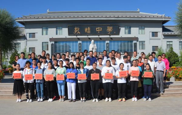 8月17日上午10時(shí),敦煌市工商聯(lián)“光彩助學(xué)行”活動(dòng)在敦煌中學(xué)舉行。敦煌千年古城文化發(fā)展有限公司副總經(jīng)理牛英霓、甘肅絲路敦煌山莊酒店有限責(zé)任公司總經(jīng)理杜亞?wèn)|等9家企業(yè)和今年新考入大學(xué)的24名學(xué)生及家長(zhǎng)參加了捐助活動(dòng)。