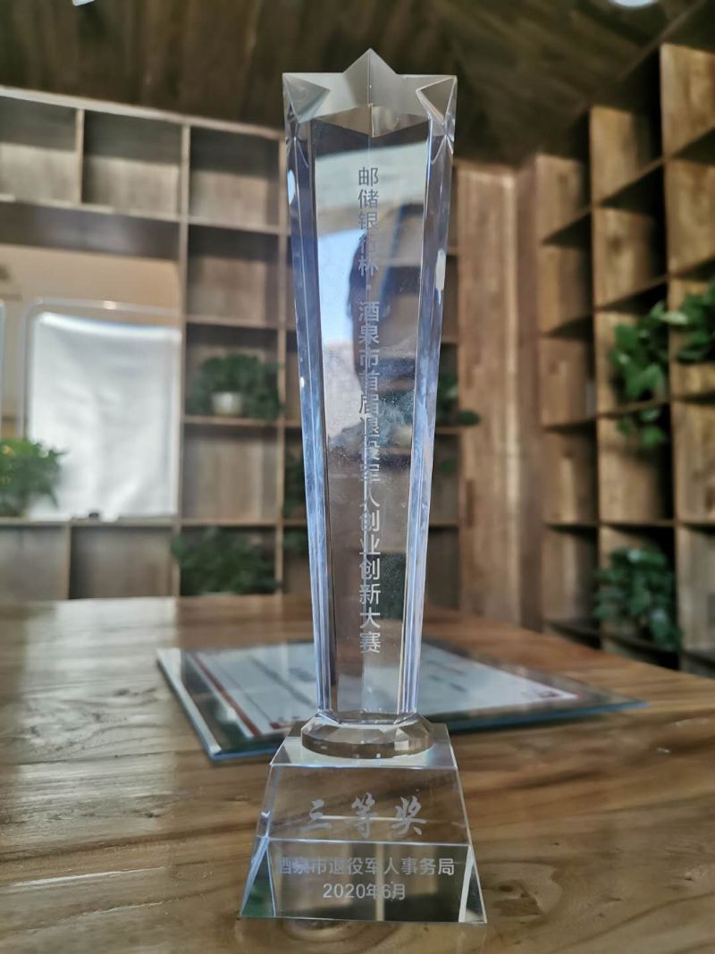 2020郵儲銀行杯酒泉市首屆退役軍人創(chuàng)業(yè)創(chuàng)新大賽三等獎(jiǎng)杯