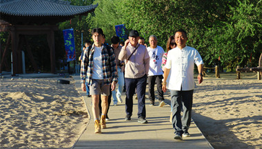 下午7時(shí),一木雅實(shí)一行在月牙泉小鎮(zhèn)議堂觀看了千年敦煌項(xiàng)目宣傳片,隨后參觀了敦煌洞窟主題民宿客棧、清涼書(shū)屋,并在鳴沙藝術(shù)館體驗(yàn)了敦煌沙畫(huà)的制作。一木雅實(shí)在體驗(yàn)沙畫(huà)創(chuàng)作后連連稱贊:“沙畫(huà)的創(chuàng)作過(guò)程非常有趣,敦煌的沙文化非常有魅力!