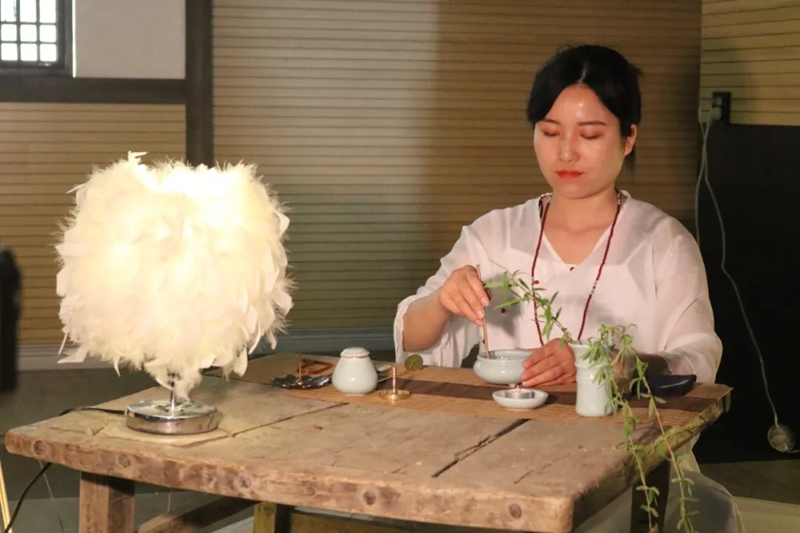 用花草、紗幔、燈光元素點(diǎn)綴的議堂里散發(fā)著回歸自然的風(fēng)情。與會(huì)嘉賓們一一凈手后靜心禪坐,靜待這場(chǎng)與雅樂的美麗邂逅。