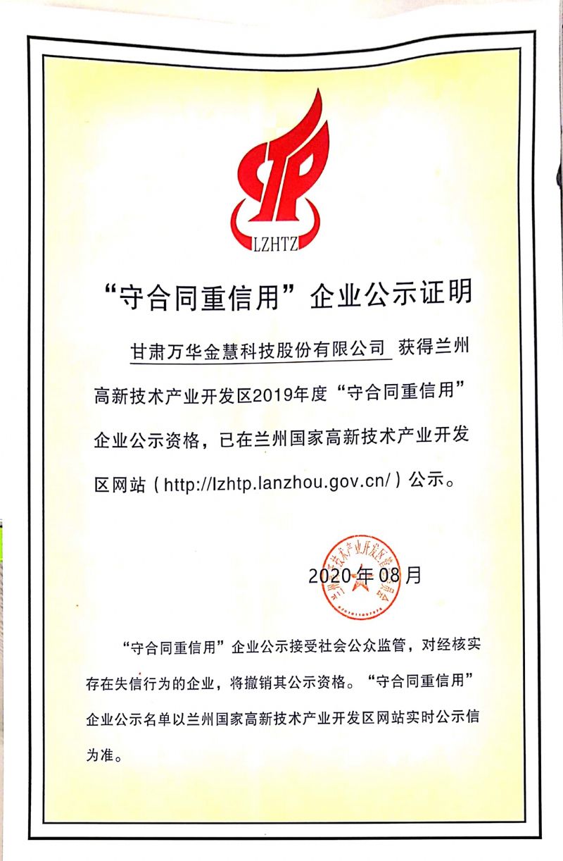 2019年度蘭州高新區(qū)“守合同重信用”企業(yè)