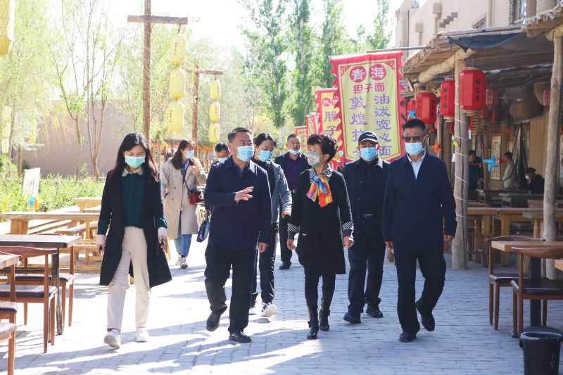 4月27日,山丹縣政府黨組成員、副縣長趙文成帶隊(duì)來千年敦煌項(xiàng)目一期月牙泉小鎮(zhèn)民俗文化旅游景區(qū)學(xué)習(xí)考察文旅產(chǎn)業(yè)發(fā)展方面的先進(jìn)經(jīng)驗(yàn)和典型做法。敦煌市文旅局副局長賀雁鴻陪同考察,敦煌千年古城文化發(fā)展有限公司項(xiàng)目總監(jiān)熊秀霞現(xiàn)場接待。