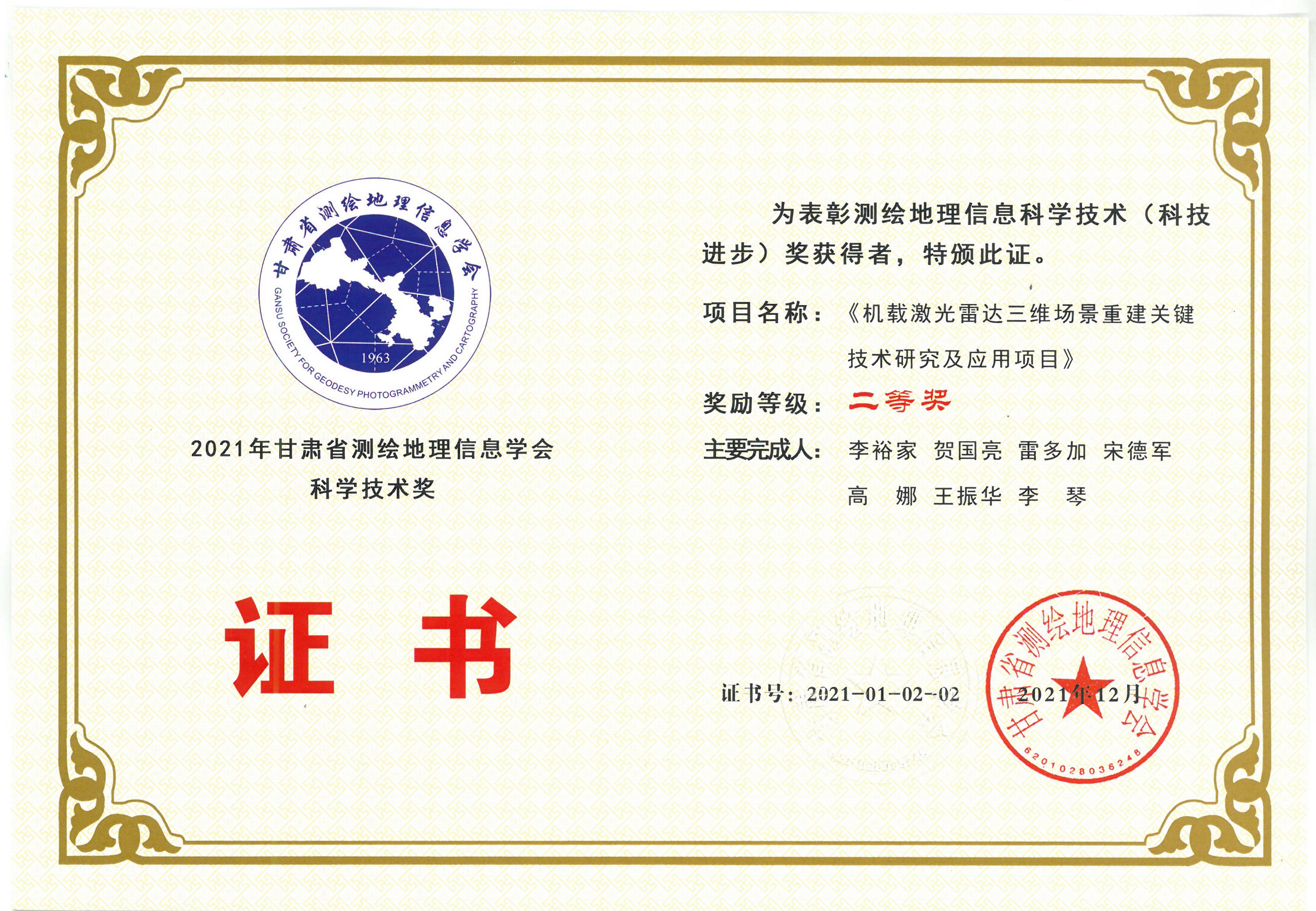 2021年甘肅省測繪地理信息學(xué)會科學(xué)技術(shù)獎二等獎