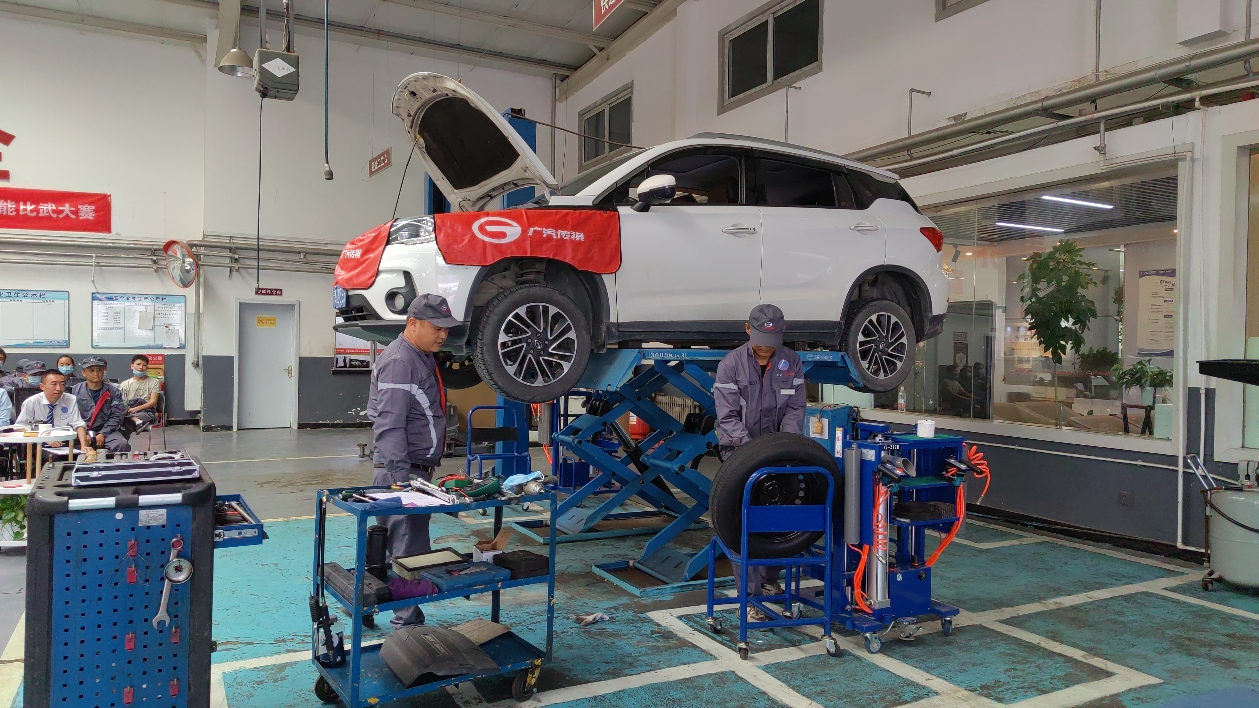 為不影響進(jìn)店客戶的車輛維修,售后技能比武大賽在25日下午5時(shí)開啟。售后技能比武分為前臺(tái)接待環(huán)檢環(huán)節(jié)和車間班組檢修環(huán)節(jié)。前臺(tái)接待顧問沈國清、王哲、馬芳、竇麗晶、付海清,車間班組蔣永順、許平、王衛(wèi)、劉曉平參加角逐。售后比武環(huán)節(jié)以情景演練方式進(jìn)行,各評(píng)委分別擔(dān)任客戶,從迎接客戶下車、詢問客戶進(jìn)店檢查,到客戶車輛環(huán)檢送進(jìn)車間,上舉升機(jī)測胎壓卸輪胎檢測……經(jīng)過4個(gè)小時(shí)的比武演示,最終王哲、沈國清、馬芳分別獲得一、二、三等獎(jiǎng);車間班組王衛(wèi)、劉曉平獲一等獎(jiǎng),付海青榮獲優(yōu)秀新人獎(jiǎng)。