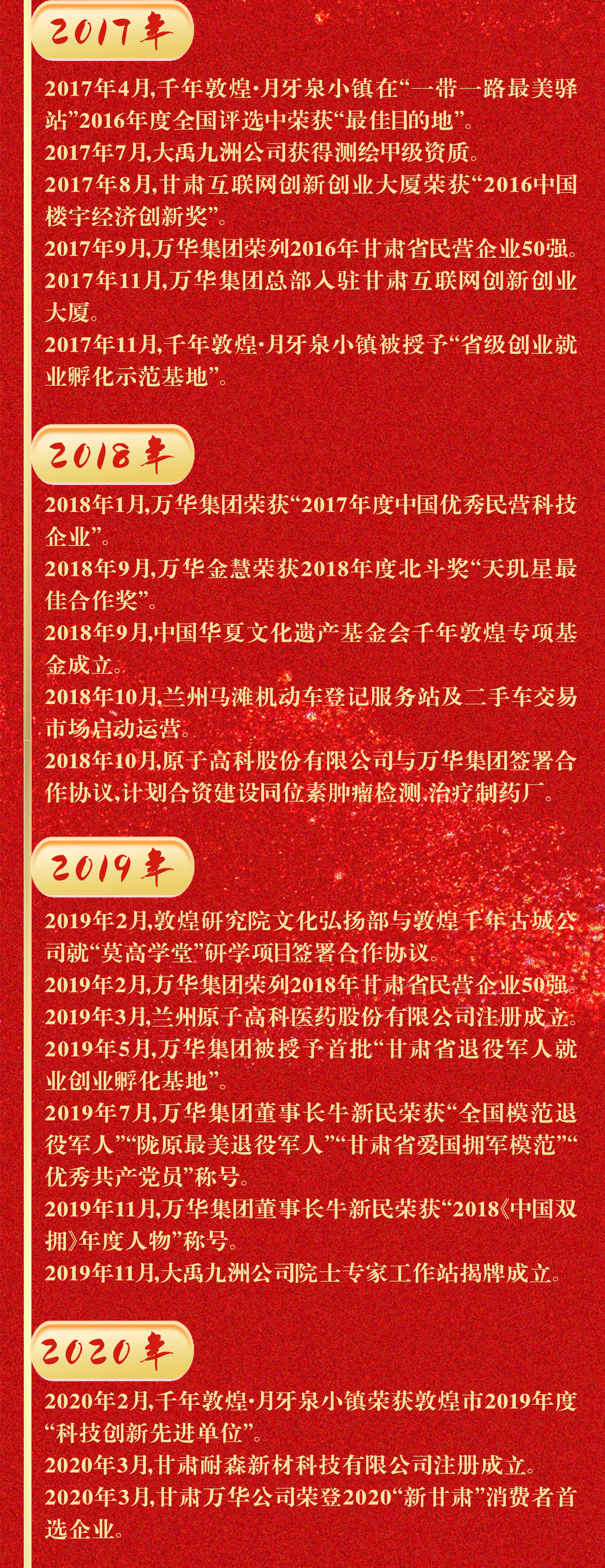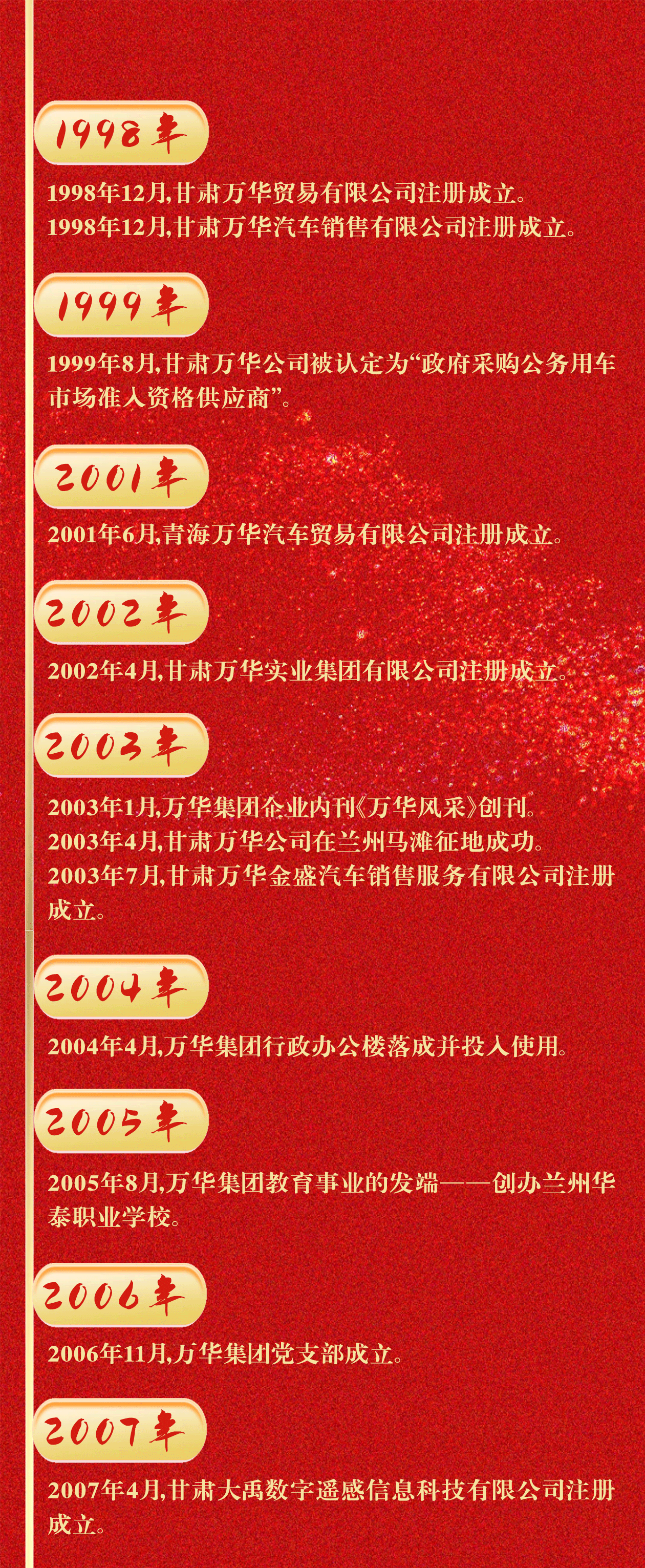 甘肅萬華實(shí)業(yè)集團(tuán)有限公司自1998年12月12日成立,集團(tuán)總部坐落于蘭州市七里河區(qū)南濱河中路1119號(hào),位于“三季有花、四季常青、水映城廓、樹伴流水”的黃河風(fēng)情線之中,總占地面積50畝。