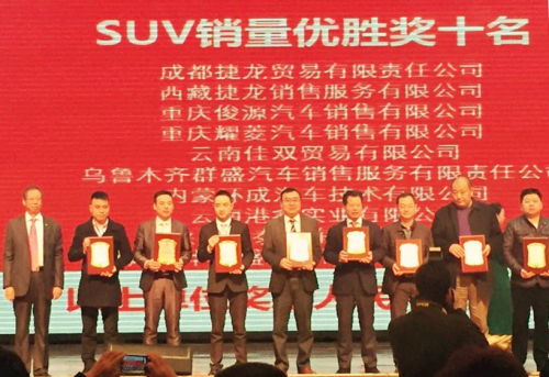 上午9時(shí),會議正式開始,湖南獵豹廠家領(lǐng)導(dǎo)對汽車市場形勢、2015年?duì)I銷工作思路分析、講解,并重點(diǎn)針對2015年即將上市的新產(chǎn)品進(jìn)行介紹。本次會議上,甘肅萬華金盛汽車銷售服務(wù)有限公司榮獲“獵豹SUV銷量優(yōu)勝獎” 并獲得廠家15萬元獎金獎勵,甘肅萬華汽車銷售有限公司執(zhí)行董事宿曉中代表萬華金盛上臺領(lǐng)獎。