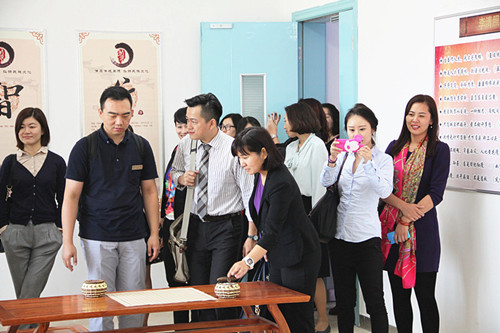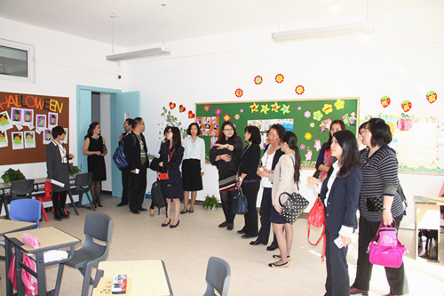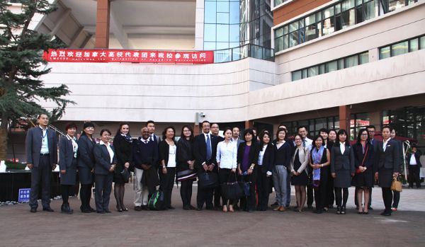 加拿大駐北京大使館商務(wù)專員司馬天明先生和張可先生,以及來自加拿大26所大學(xué)的教育代表32人,依次參觀了蘭州萬華中加國際學(xué)校的高爾夫教室、國學(xué)教室、臺(tái)球室、瑜伽館、游泳館、乒乓球館、籃球館、計(jì)算機(jī)教室、學(xué)生教室、學(xué)生宿舍及風(fēng)雨操場,學(xué)校老師用流利的中英雙語向代表團(tuán)介紹了各個(gè)功能室及區(qū)域。