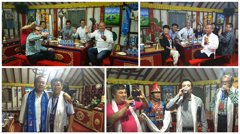 晚上8點(diǎn),隨著晚會的開始,月牙泉小鎮(zhèn)裕固族風(fēng)情園的氣氛逐漸升溫。牛新偉和西班牙友人們圍桌而坐,聊天、暢飲。因?yàn)槲靼嘌烙讶擞须S行的翻譯人員,所以溝通起來沒有障礙。他們一邊欣賞敦煌文藝演出,一邊品嘗月牙泉小鎮(zhèn)的各色小吃,體驗(yàn)與感受著月牙泉小鎮(zhèn)的獨(dú)特魅力。