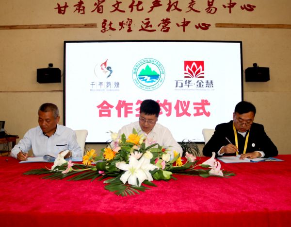 9月21日,千年敦煌、張掖山水集團和萬華金慧三方合作協(xié)議簽約儀式在月牙泉小鎮(zhèn)的甘肅省文化產(chǎn)權(quán)交易中心敦煌運營中心正式舉行。敦煌千年古城開發(fā)有限公司董事長牛新偉、張掖市山水文體旅游集團有限公司副總經(jīng)理董振強、甘肅萬華實業(yè)集團有限公司副總經(jīng)理宿曉中出席本次簽約儀式。