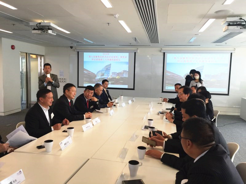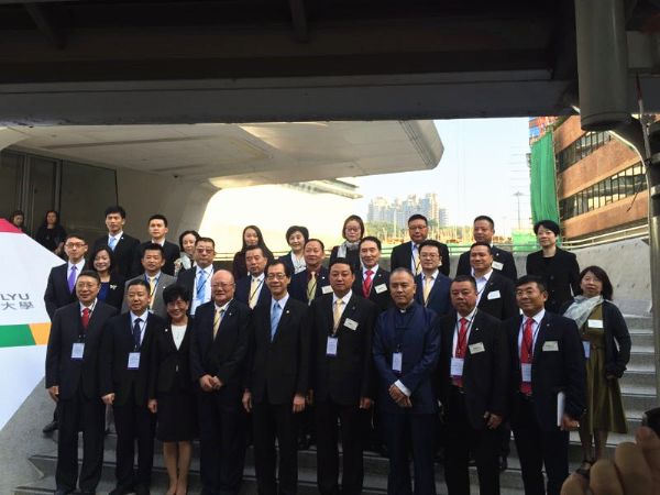 香港理工大學(xué)校董會(huì)主席陳子政先生與香港理工大學(xué)校長(zhǎng)唐偉章教授為牛新民董事長(zhǎng)頒獎(jiǎng)并合影。