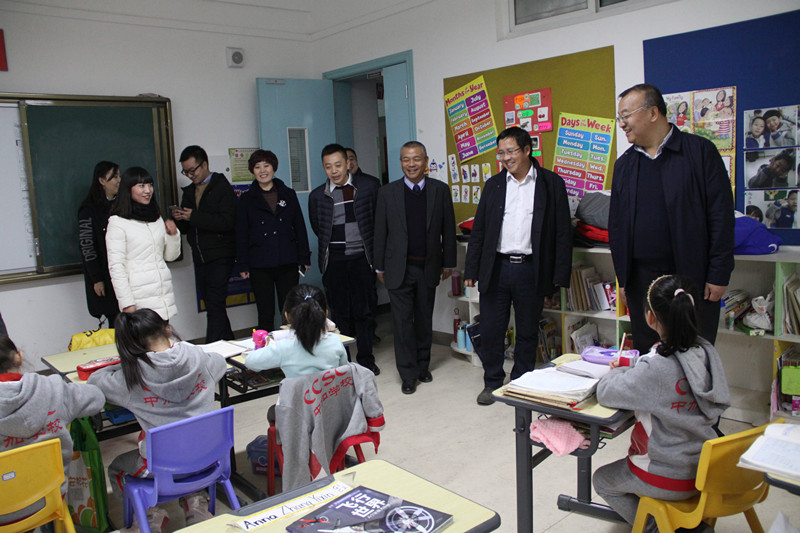 正值自習(xí)時(shí)間,王春丁董事長一行來到一間一年級教室,學(xué)生們落落大方地回答著大家的提問,言談舉止應(yīng)對自如,受到稱贊。