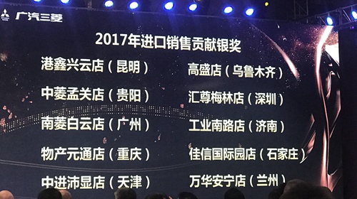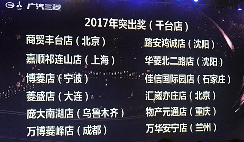 1月15日,“聚勢(shì)前行 賦能未來(lái)”廣汽三菱銷售服務(wù)店年會(huì)在廈門(mén)舉行,甘肅萬(wàn)華汽車銷售有限公司總經(jīng)理曹磊、常務(wù)副總經(jīng)理王文彬,天水勝華汽車銷售服務(wù)有限公司總經(jīng)理白鵬飛應(yīng)邀出席。憑借著出眾的企業(yè)實(shí)力、銷售業(yè)績(jī)與品牌服務(wù),會(huì)上喜報(bào)頻頻傳來(lái):甘肅萬(wàn)華汽車銷售有限公司在全國(guó)數(shù)百家廣汽三菱經(jīng)銷商中,以優(yōu)異成績(jī)榮獲廣汽三菱2017年金牌銷售服務(wù)店、2017年進(jìn)口銷售貢獻(xiàn)銀獎(jiǎng)、2017年突出獎(jiǎng)(千臺(tái)店)、2017年售后服務(wù)優(yōu)秀店、2017年優(yōu)秀總經(jīng)理獎(jiǎng)(曹磊)共5項(xiàng)大獎(jiǎng),為甘肅萬(wàn)華驕人成績(jī)單再添絢爛一筆。