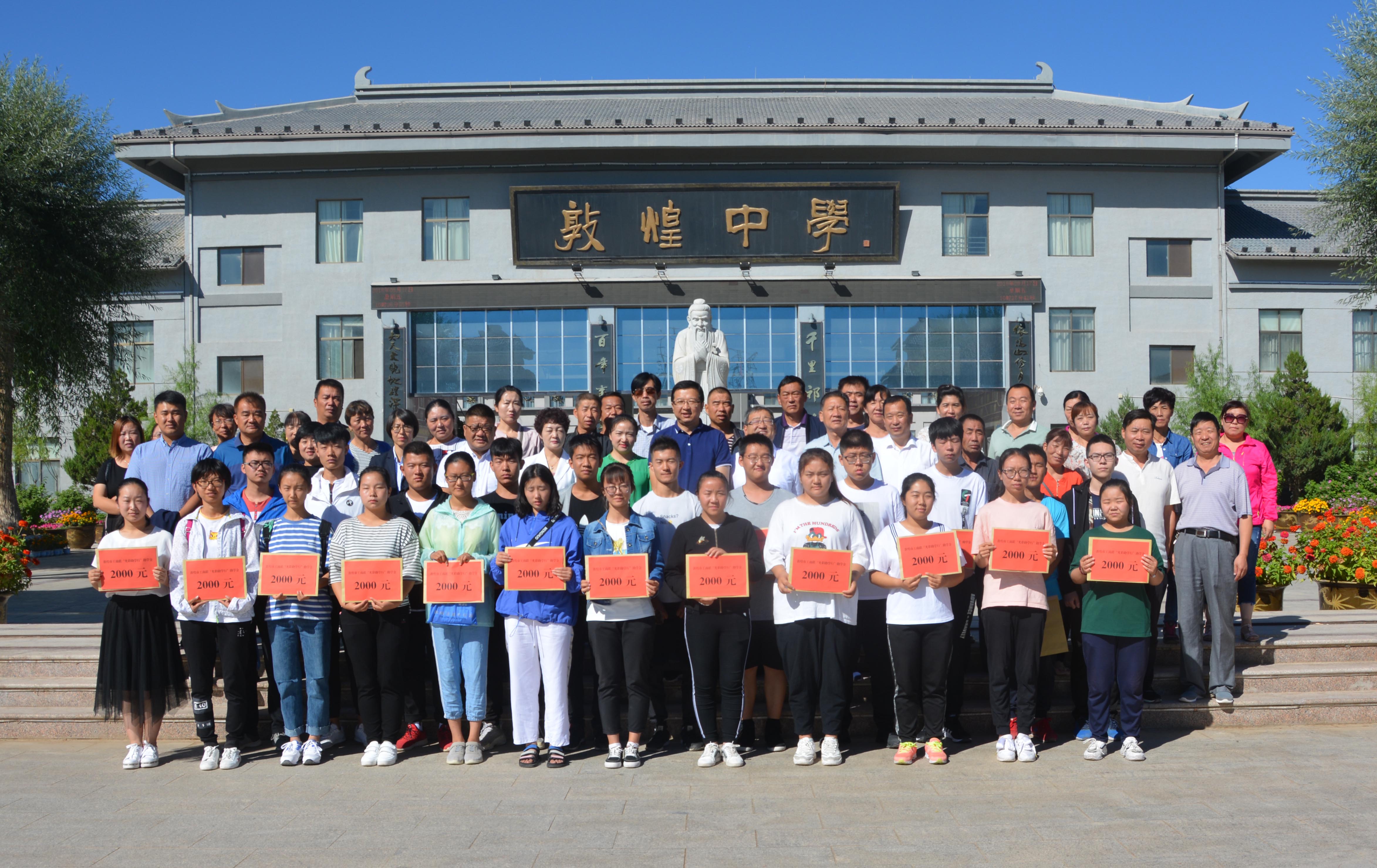 8月17日上午10時(shí),敦煌市工商聯(lián)“光彩助學(xué)行”活動(dòng)在敦煌中學(xué)舉行。敦煌千年古城文化發(fā)展有限公司副總經(jīng)理牛英霓、甘肅絲路敦煌山莊酒店有限責(zé)任公司總經(jīng)理杜亞?wèn)|等9家企業(yè)和今年新考入大學(xué)的24名學(xué)生及家長(zhǎng)參加了捐助活動(dòng)。