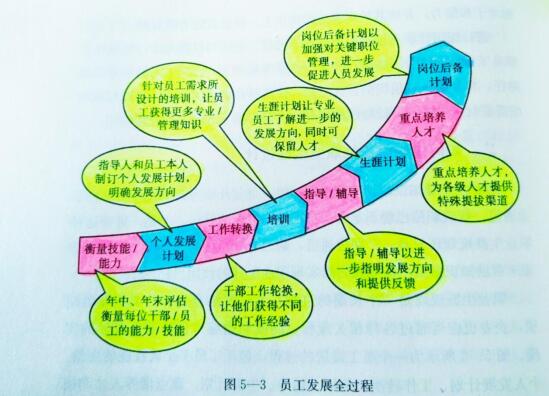 員工發(fā)展方面,要幫助知識(shí)型員工做好職業(yè)生涯規(guī)劃。這里我翻拍了一本人力資源書中的員工發(fā)展過程圖:
