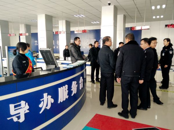 12月5日,甘肅省公安廳交通管理局副局長(zhǎng)鐘山、甘肅省公安廳交通管理局車管處處長(zhǎng)張建國(guó),蘭州市公安局交通警察支隊(duì)副支隊(duì)長(zhǎng)王元明,蘭州市公安局交警支隊(duì)車輛管理所教導(dǎo)李林、副所長(zhǎng)楊占軍、副所長(zhǎng)張彪一行蒞臨蘭州馬灘機(jī)動(dòng)車登記服務(wù)站視察指導(dǎo)工作。甘肅萬(wàn)華金盛汽車銷售服務(wù)有限公司執(zhí)行董事盛斌現(xiàn)場(chǎng)陪同。