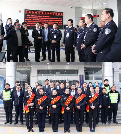 12月13日上午,公安部交通管理局在甘肅省蘭州市召開了公安交管“放管服”改革暨“百日安全行動”片區(qū)推進會。當天,公安部交通管理局副局長王強率領部局車管處及甘肅、陜西、寧夏、青海、新疆五省區(qū)公安廳交警總隊有關負責人組成的觀摩組到蘭州馬灘機動車登記服務站現(xiàn)場觀摩。甘肅省公安廳黨委委員、副廳長李明,甘肅省公安廳交警總隊總隊長黃金奎,蘭州市公安局黨委委員、交警支隊支隊長陳衛(wèi)陪同。甘肅萬華金盛汽車銷售服務有限公司執(zhí)行董事盛斌,甘肅萬華金慧科技股份有限公司總經(jīng)理施強接待講解。