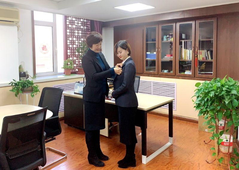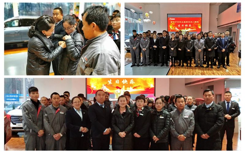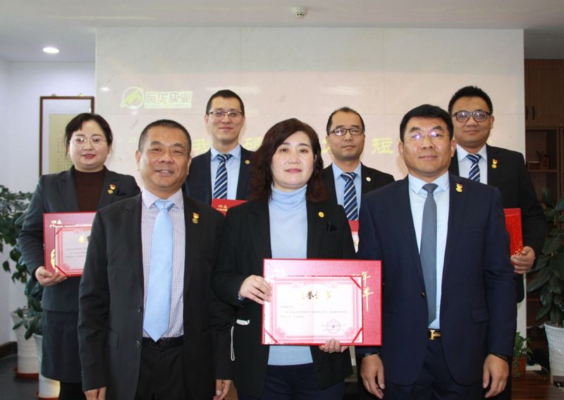 青海金易達(dá)總經(jīng)理丁云艷為司齡新晉5年和10年老員工佩戴金銀徽章,與全體員工共同送出對萬華21歲生日的祝福