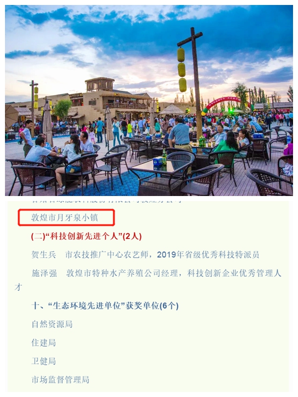 2月21日,敦煌市委經(jīng)濟(jì)工作會上通報表揚(yáng)了2019年度全市經(jīng)濟(jì)工作先進(jìn)單位和個人。千年敦煌·月牙泉小鎮(zhèn)榮獲敦煌市2019年度“科技創(chuàng)新先進(jìn)單位”,展示了景區(qū)在智慧旅游、網(wǎng)絡(luò)營銷等領(lǐng)域的創(chuàng)新水平和行業(yè)影響力。