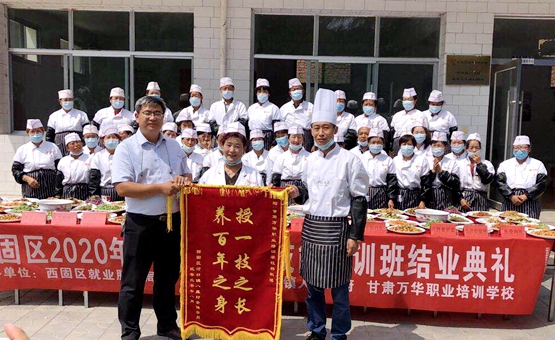 9月1日上午,由西固區(qū)就業(yè)服務(wù)局主辦,河口鎮(zhèn)政府及甘肅萬華職業(yè)培訓(xùn)學(xué)校承辦的西固區(qū)河口鎮(zhèn)中式烹飪班順利結(jié)課,西固區(qū)河口鎮(zhèn)勞保所所長張虎國、萬華職校招生運(yùn)營主任郁萬才及全體培訓(xùn)老師、學(xué)員參加了結(jié)課儀式。儀式上,培訓(xùn)班全體學(xué)員為萬華職校贈(zèng)送一面“授一技之長,養(yǎng)百年之身”的錦旗,以感謝學(xué)校優(yōu)質(zhì)的培訓(xùn)。