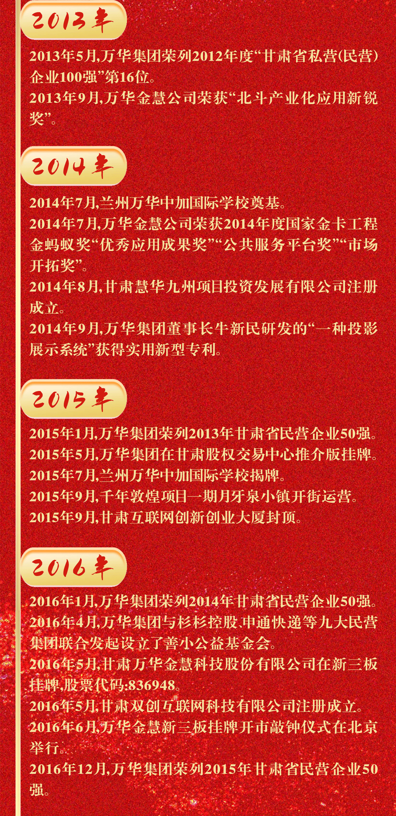 甘肅萬華實(shí)業(yè)集團(tuán)有限公司自1998年12月12日成立,集團(tuán)總部坐落于蘭州市七里河區(qū)南濱河中路1119號(hào),位于“三季有花、四季常青、水映城廓、樹伴流水”的黃河風(fēng)情線之中,總占地面積50畝。